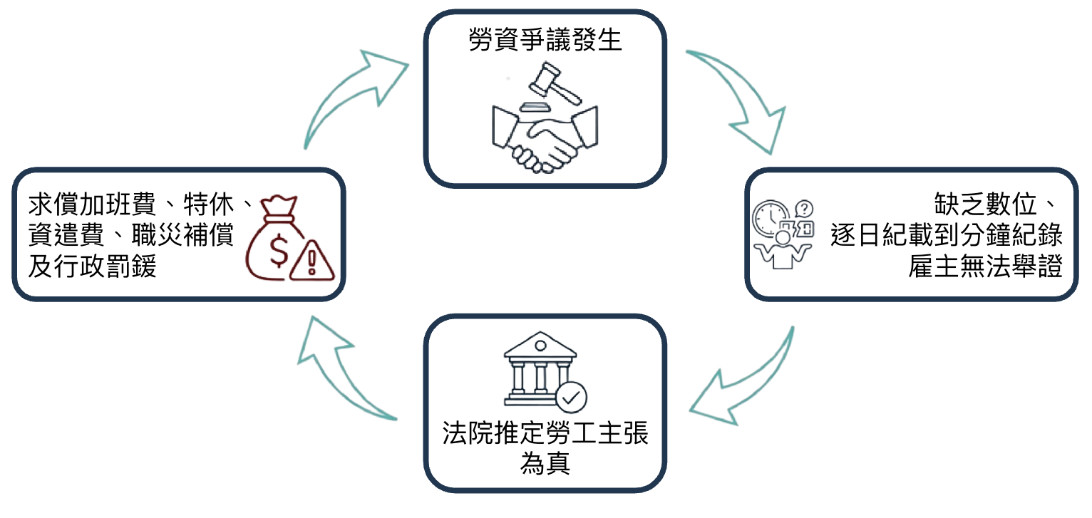 單純的打卡鐘或不確實的出勤紀錄,已無法滿足法院要求,能符合勞動事件法的雲端打卡系統及正確的人事制度才是唯一的防線