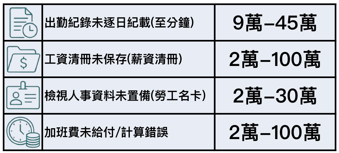 5.勞動檢查,企業常見的罰鍰一覽表